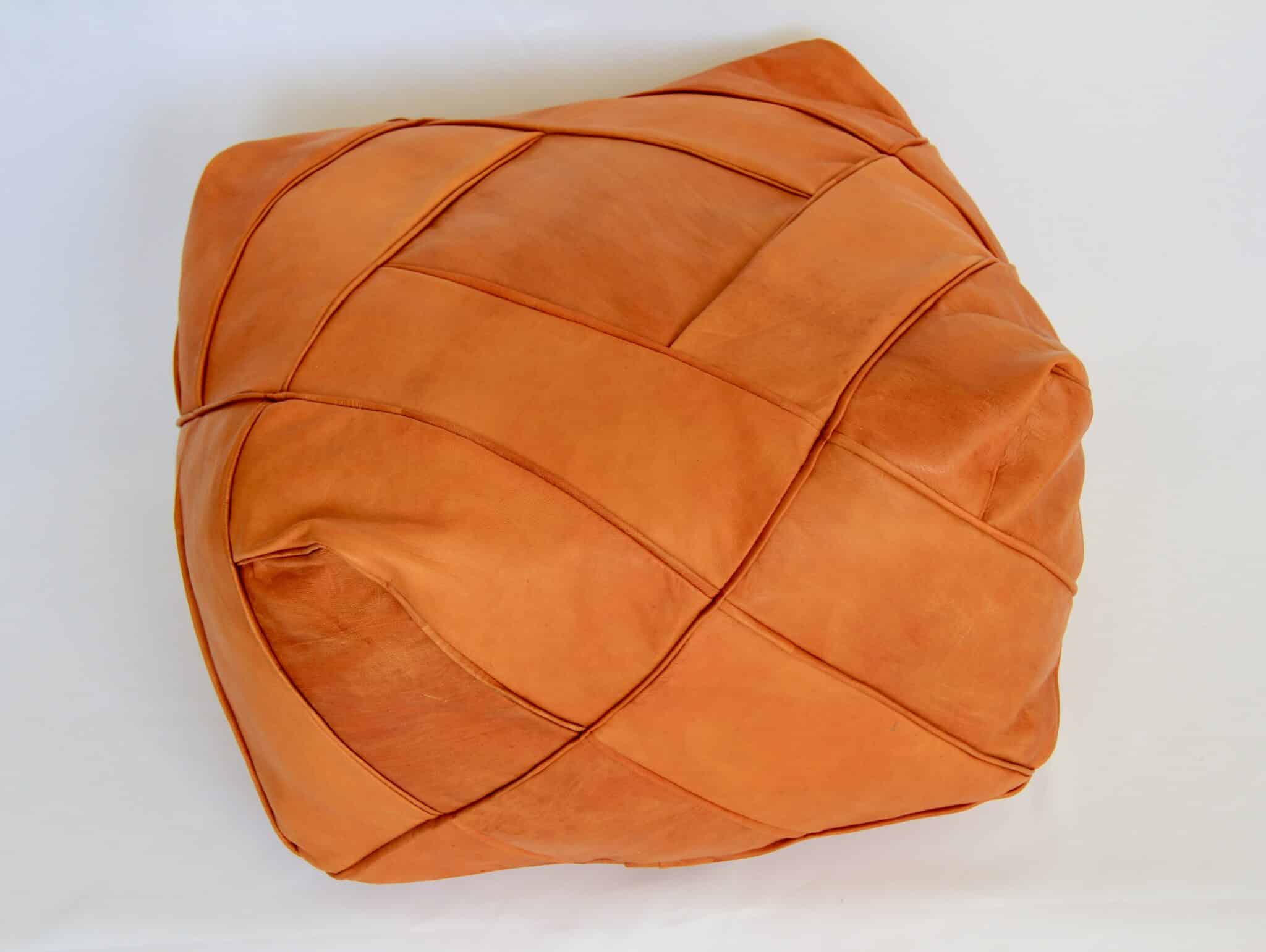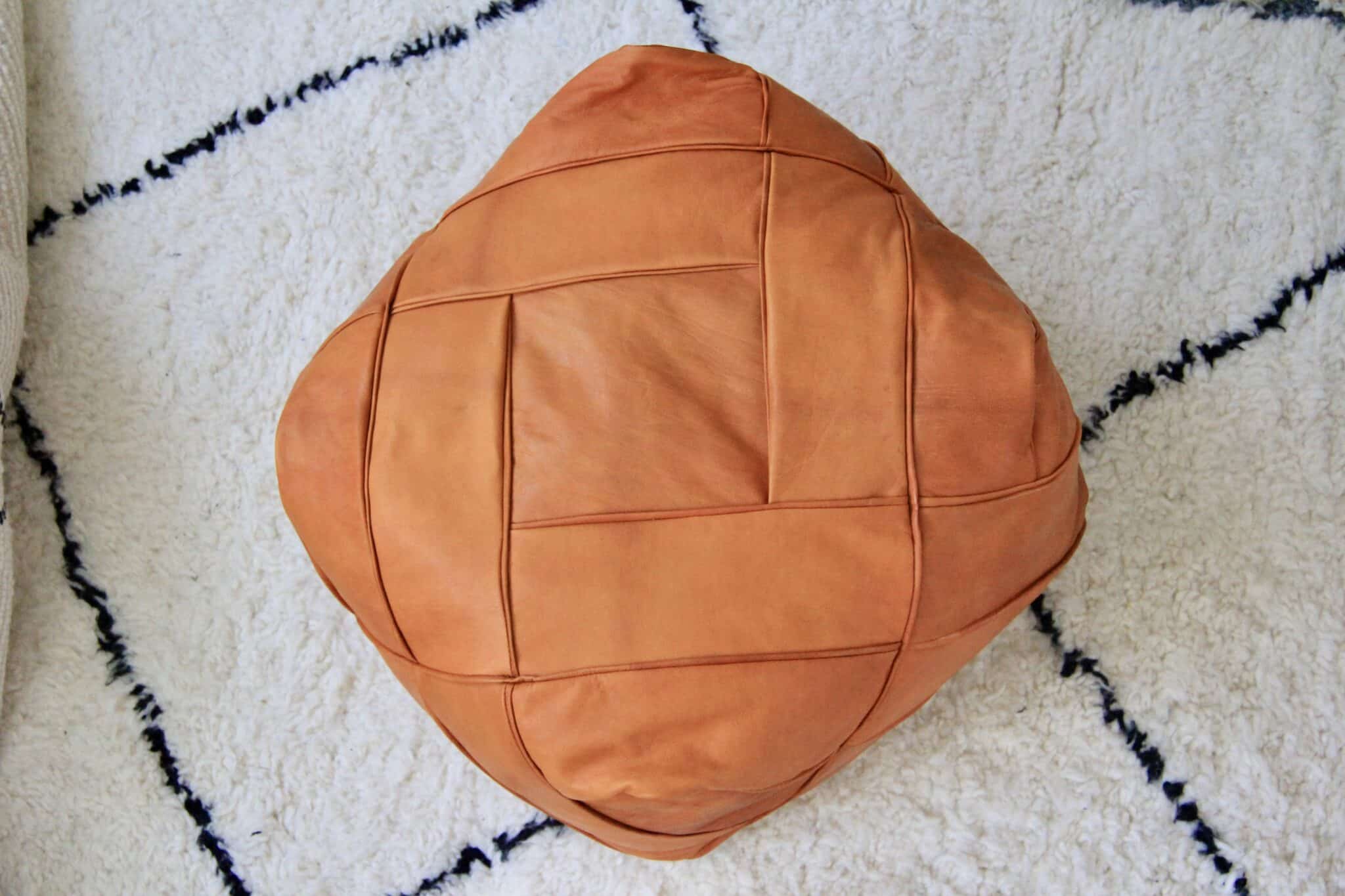 Marokkansk puf i naturligt læder, cognac, med palme flet design.