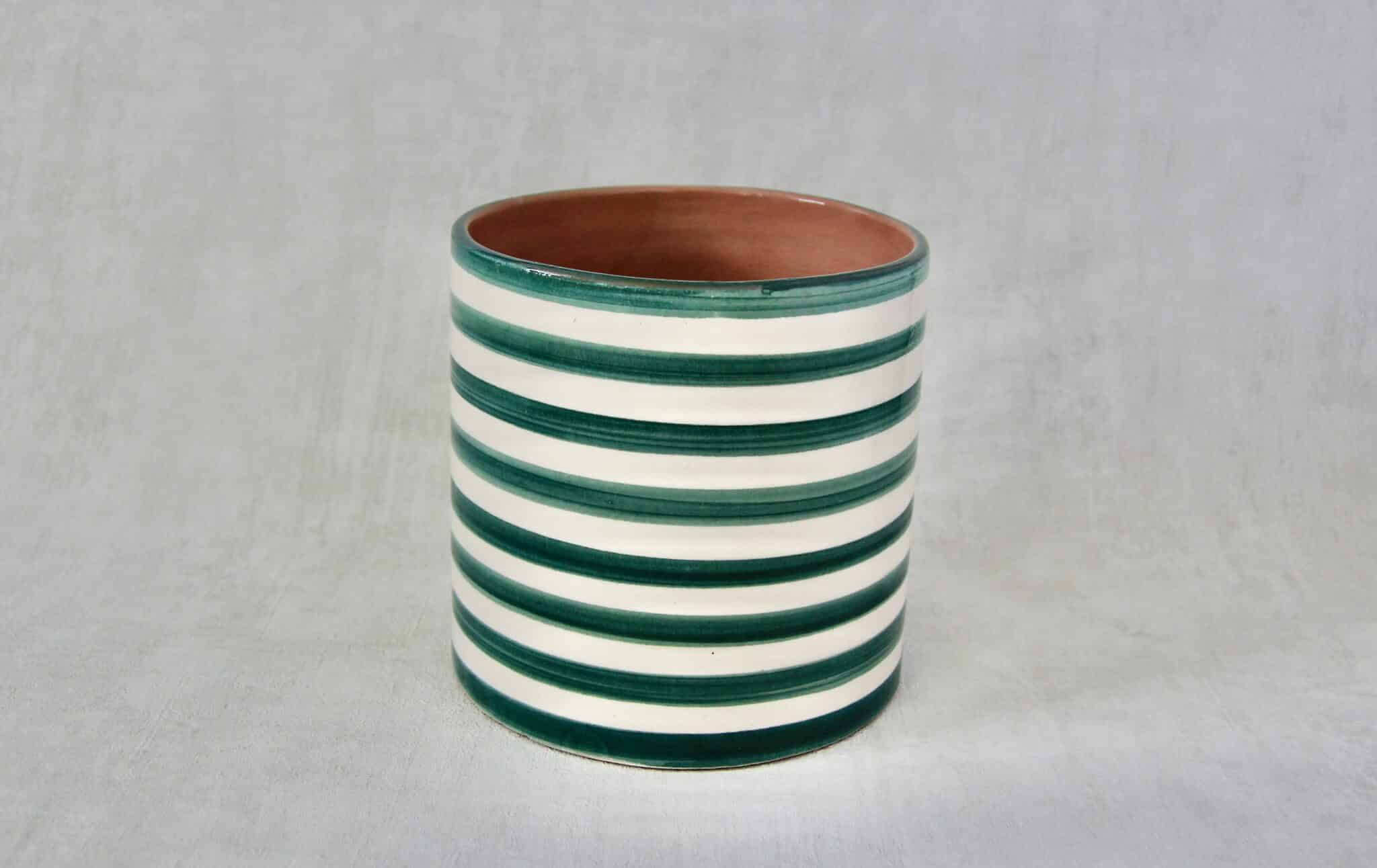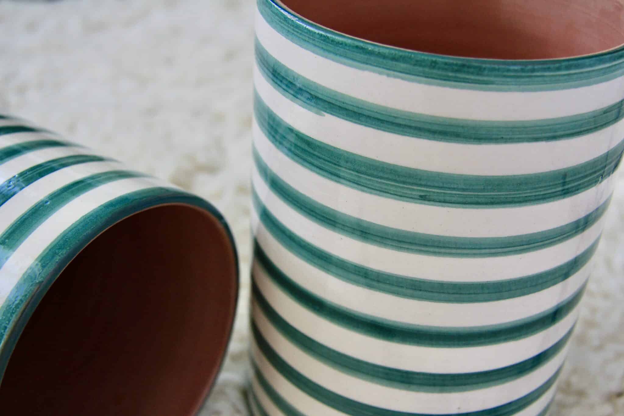 Enkel smuk keramik i grøn stribes, lavet af talentfulde håndværkere i Marokko.