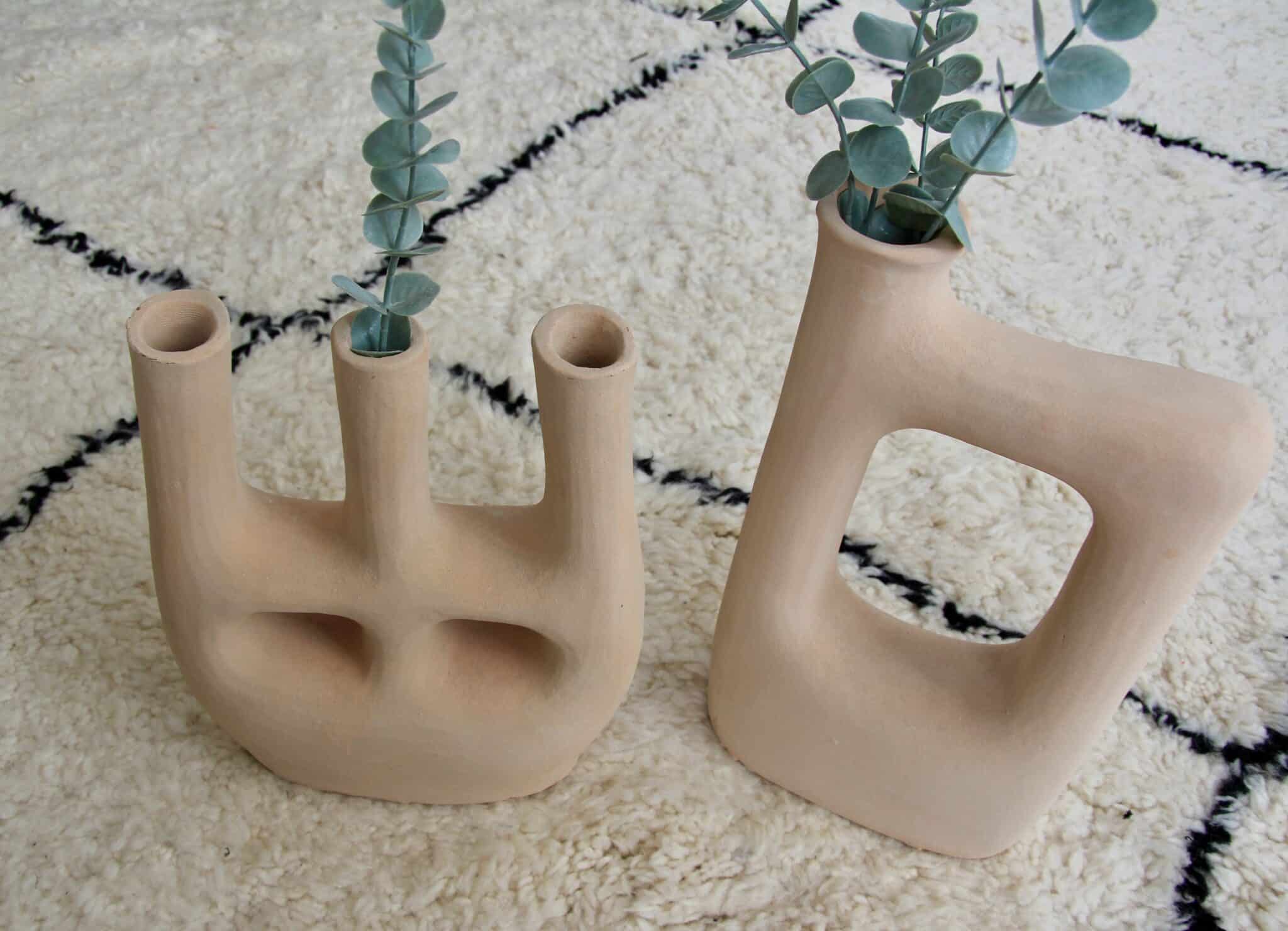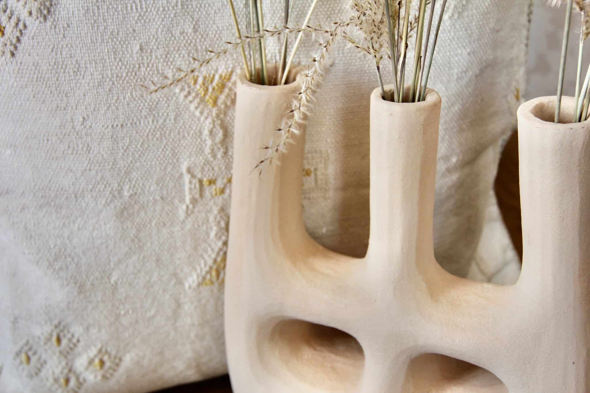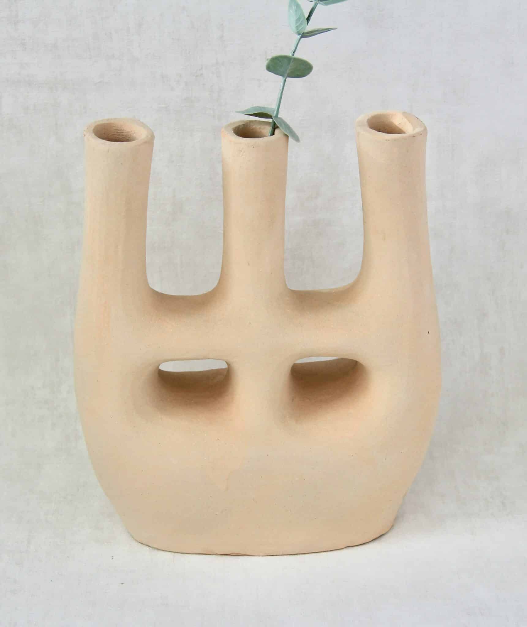 Smuk rå lysestage/vase i naturligt uglaseret keramik fra Tamegroute i det sydlige Marokko.