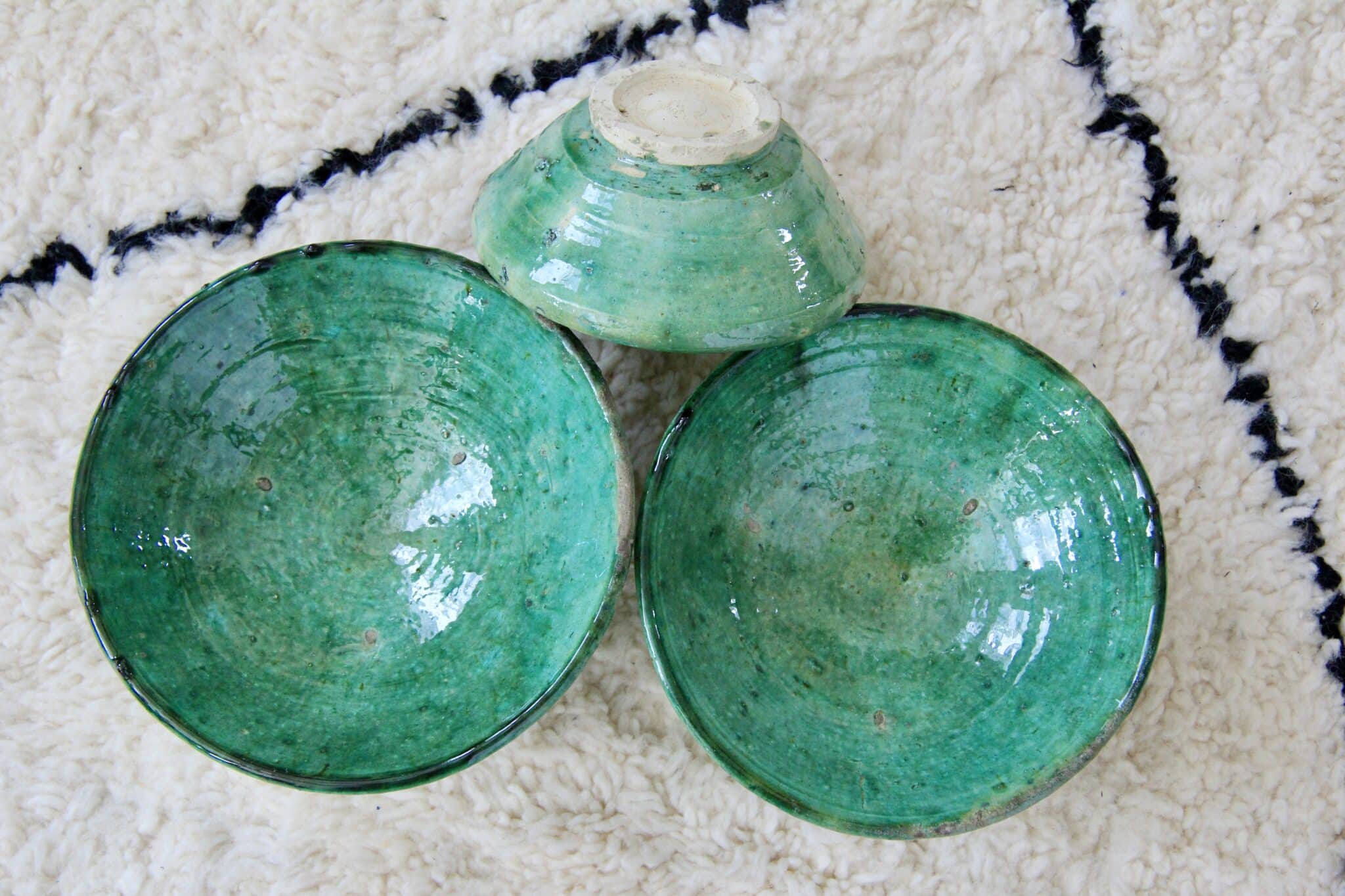 Smuk grøn Tamegroute skål fra Draa- dalen i det sydlige Marokko.